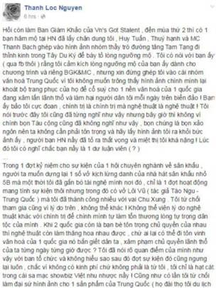 “Chuyện các bạn trẻ của chúng ta quay sang thất vọng với các ngôi sao bên Tàu là một chuyện thực sự bao đồng. Các bạn nên thất vọng với các ngôi sao của chính Việt Nam đây này.”