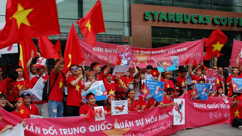 Hô vang các khẩu hiệu phản đối các hành vi bất hợp pháp của Trung Quốc và khẳng định chủ quyền của Việt Nam với hai quần đảo Hoàng Sa và Trường Sa