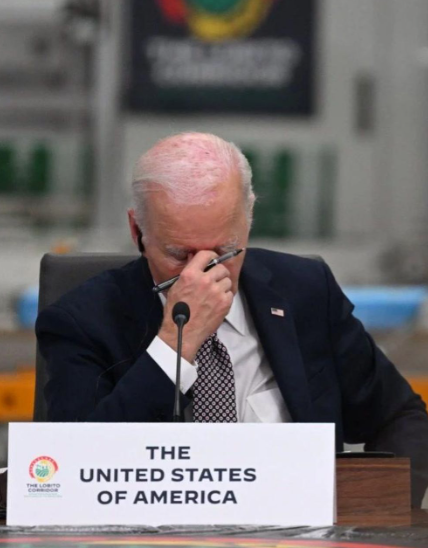 Một đoạn video ghi lại cảnh Biden tại Hội nghị thượng đỉnh xuyên châu Phi Lobito Corridor với tay trái đưa lên miệng và nhắm mắt trong khoảng 20 giây.