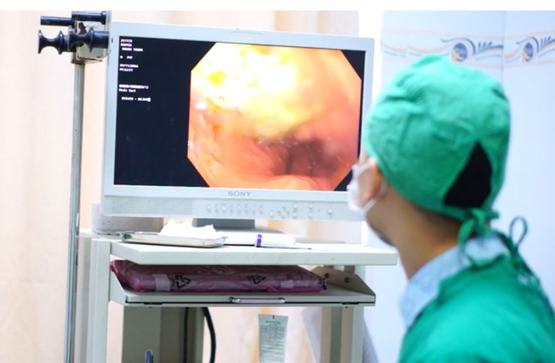 Bác sĩ thực hiện cuộc nội soi cấp cứu cầm máu, giúp người bệnh qua cơn nguy kịch