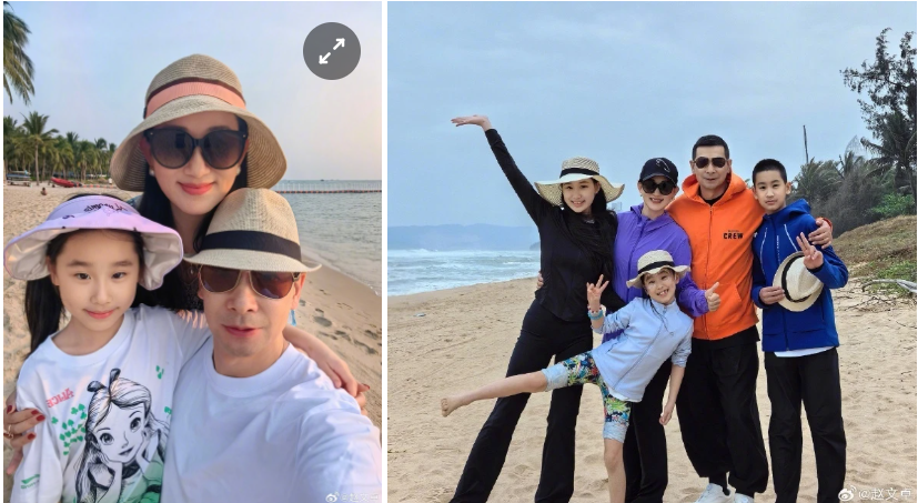 Triệu Văn Trác tận hưởng kỳ nghỉ tại Việt Nam cùng vợ và các con. Ảnh: Weibo.