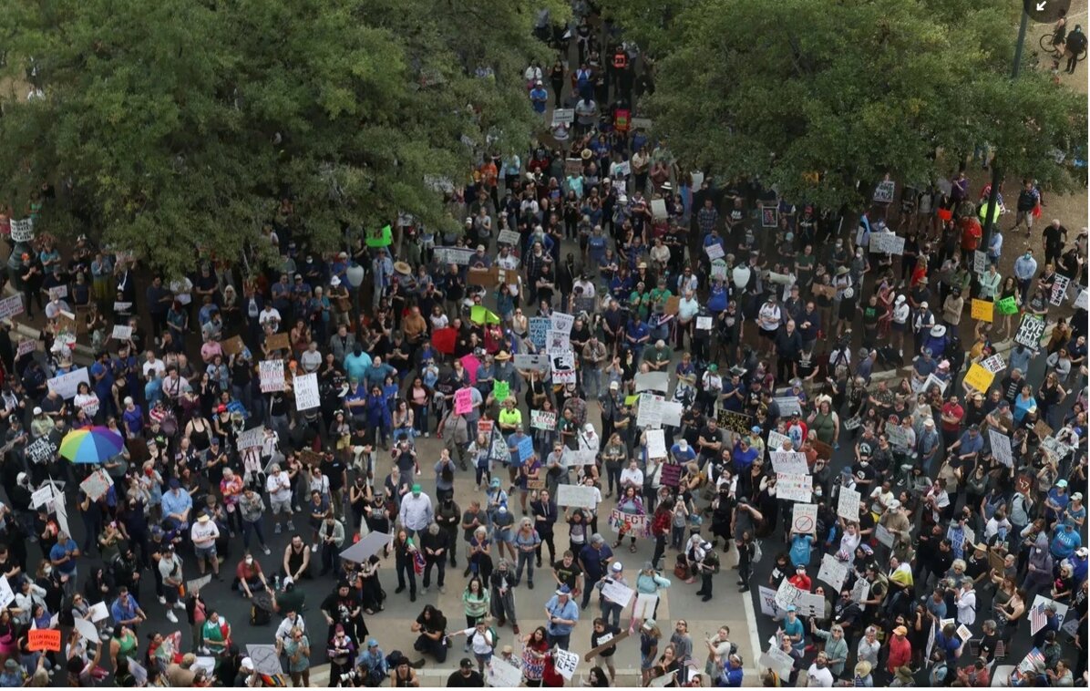 Lượng lớn người biểu tình tập trung trước tòa nhà Quốc hội Texas ở Austin vào ngày 5/2 (giờ địa phương). Những người có liên quan đến các cuộc biểu tình nói rằng phong trào này hướng đến việc chỉ trích những hành động của ông Trump trên cương vị tổng thống Mỹ thứ 47 và Dự án 2025. Ảnh: Reuters.