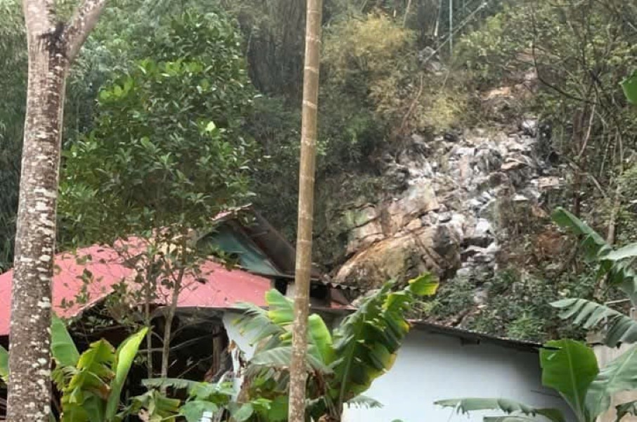 Sự việc xảy ra vào khoảng 2h hôm nay. Thời điểm trên, vợ chồng ông Bùi Văn Hanh (SN 1972) ở thôn Cả đang ngủ thì nghe tiếng động lớn từ trên đỉnh núi.