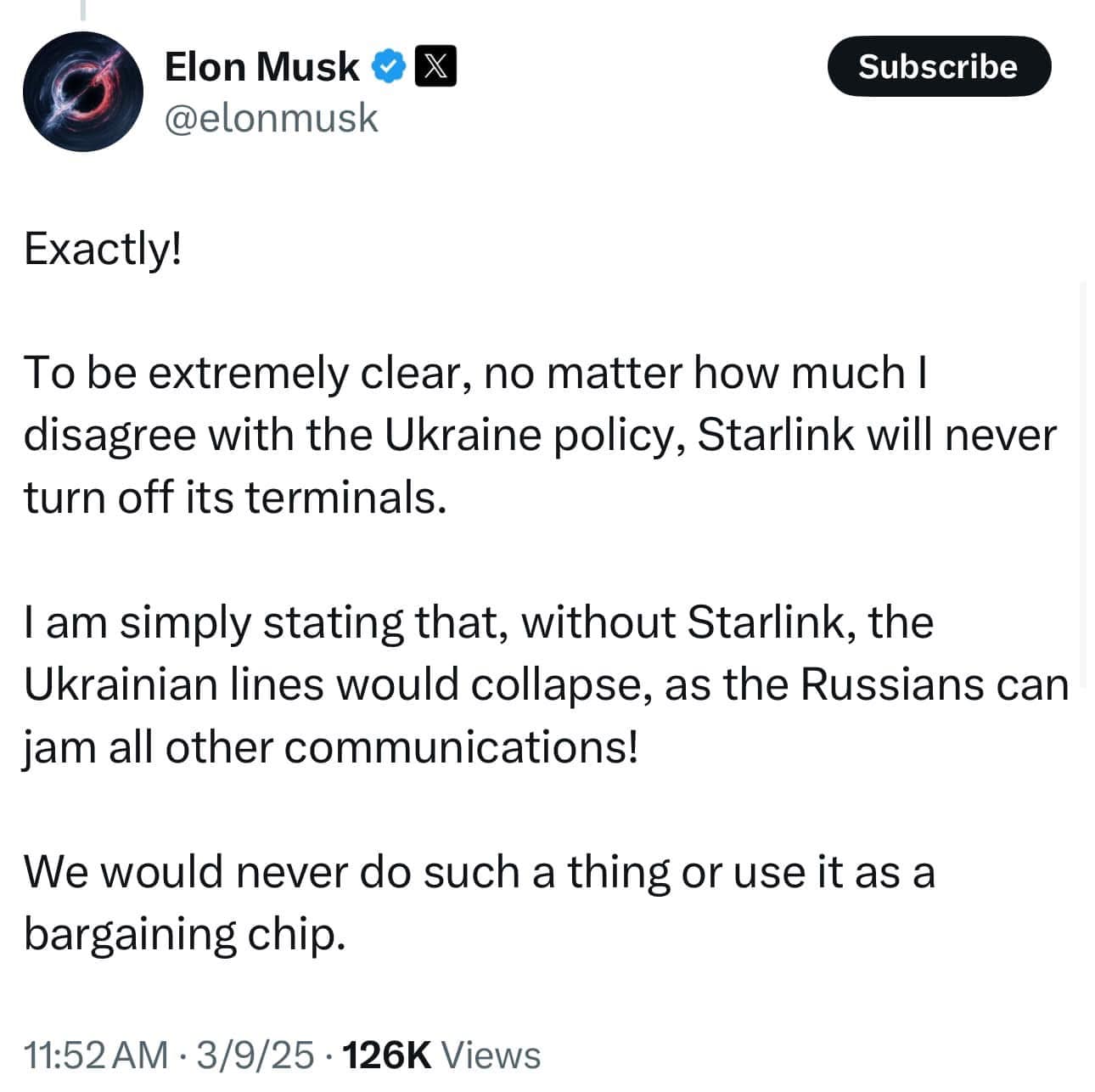 TT Trump và cả Elon đều kg có ý định cắt Starlink của Ukraine. STOP SPREADING FAKE NEWS!!