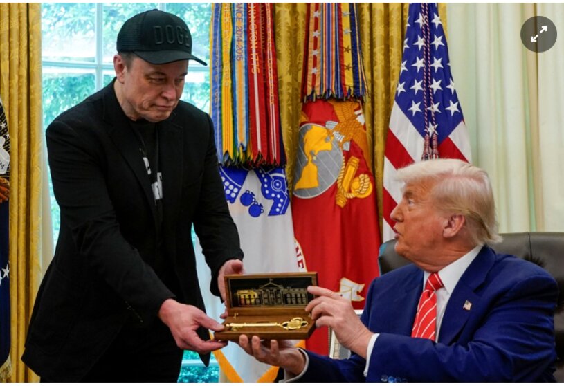 Để ghi nhận đóng góp, ông Trump trao tặng Musk một chiếc chìa khóa vàng tượng trưng cho Nhà Trắng.