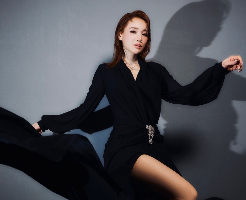 Diễn viên Diệp Bảo Ngọc phối "cây" đen dự show.