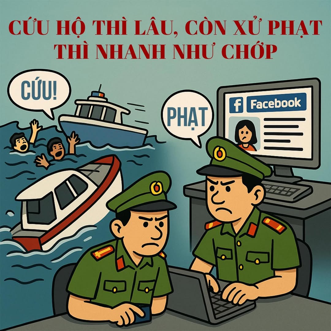 Cứu hộ thì chậm trễ nhưng đi rình mò từng cái bình luận để mạng xã hội thì công an làm rất nhanh. Chị N.H.A.T. (43 tuổi, trú tại phường Hồng Gai) đã bị công an Quảng Ninh mời lên đồn, xử phạt hành chính vì bình luận sai số lượng người t.ử vong trong vụ lật tàu trên Facebook.