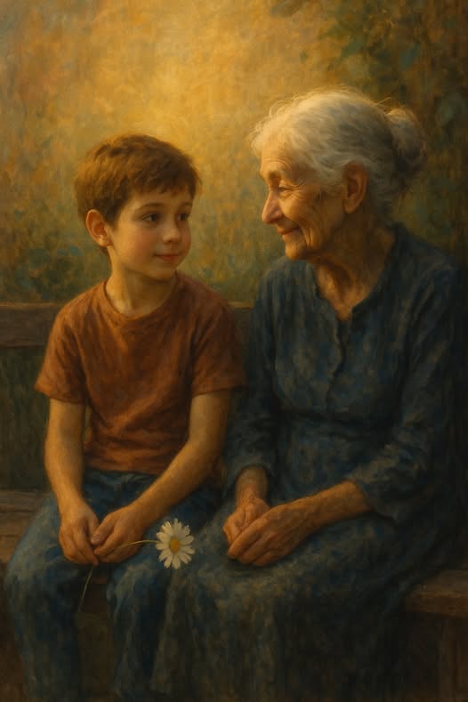 Bà mỉm cười. Bà hôn nhẹ lên má em và khẽ thì thầm:
