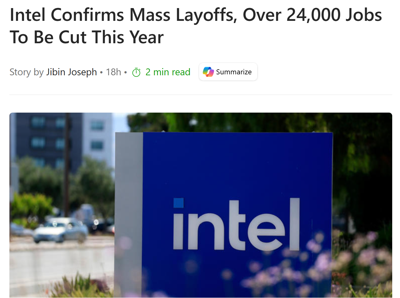 Old  Default Intel xác nhận sa thải hàng loạt, hơn 24.000 việc làm sẽ bị cắt giảm trong năm nay