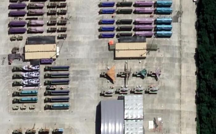 Hình ảnh vệ tinh cho thấy hàng loạt vũ khí, gồm máy bay không người lái và tên lửa, đậu tại một khu vực tập kết bên ngoài thủ đô Bắc Kinh - Trung Quốc trước lễ duyệt binh kỷ niệm 80 năm Chiến thắng phát xít diễn ra vào ngày 3-9.