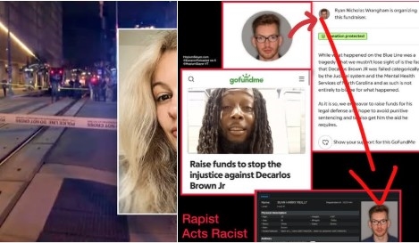 Đáng kinh tởm nhất là kẻ kêu gọi gây quỹ có tên Ryan Nicholas Wrangham, hắn viết: "Gây quỹ nhằm chặn sự bất công chống lại Decarlos Brown"; "Mặc dù những gì xảy ra trên Blue Line là một bi kịch, chúng ta không được quên rằng Decarlos Brown Jr. đã bị hệ thống tư pháp và dịch vụ sức khỏe tâm thần của North Carolina thất bại hoàn toàn, và do đó không hoàn toàn chịu trách nhiệm về những gì đã xảy ra."