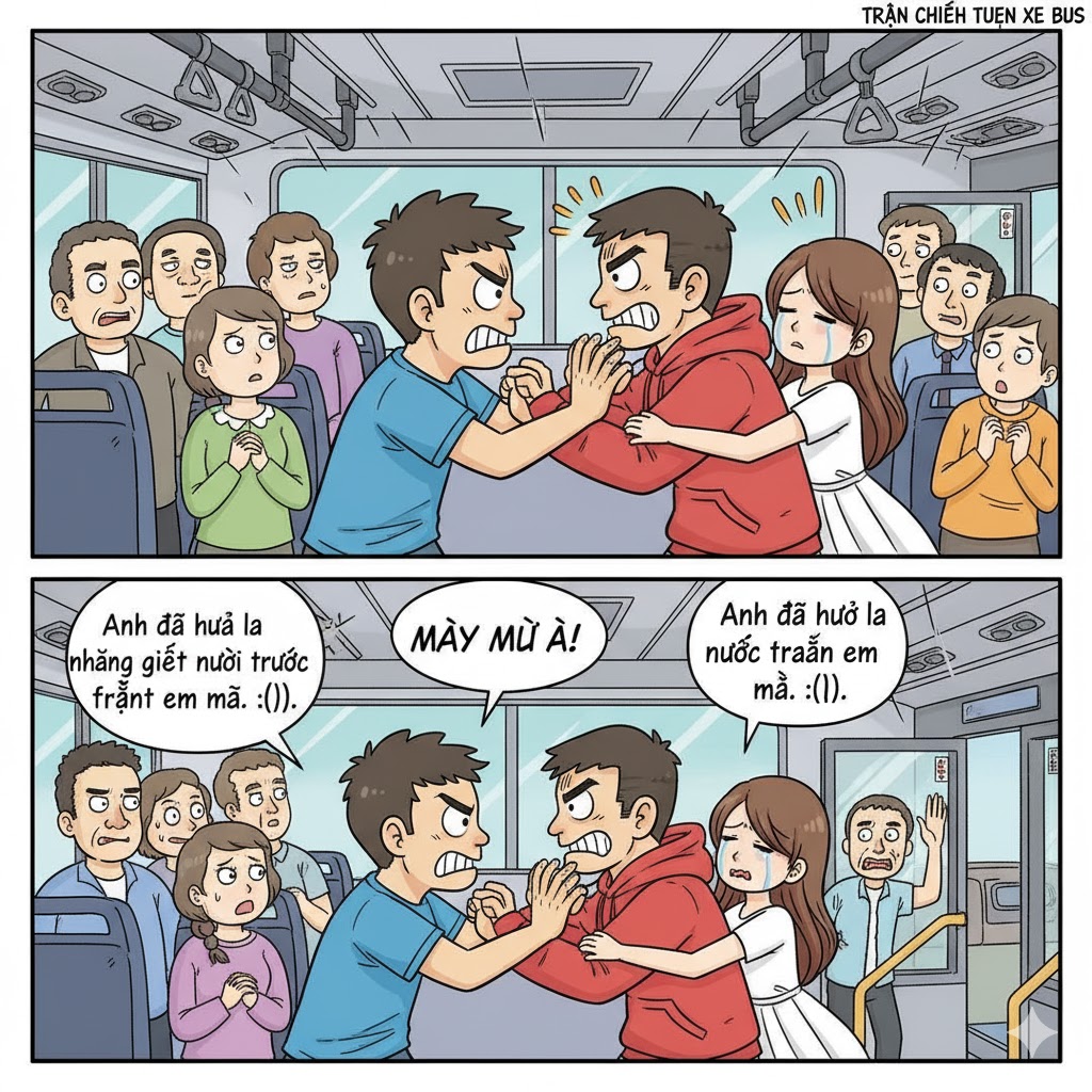 Cả xe im lặng nhìn đi chỗ khác. Thằng đó và tất cả mọi người xuống ngay bến sau.