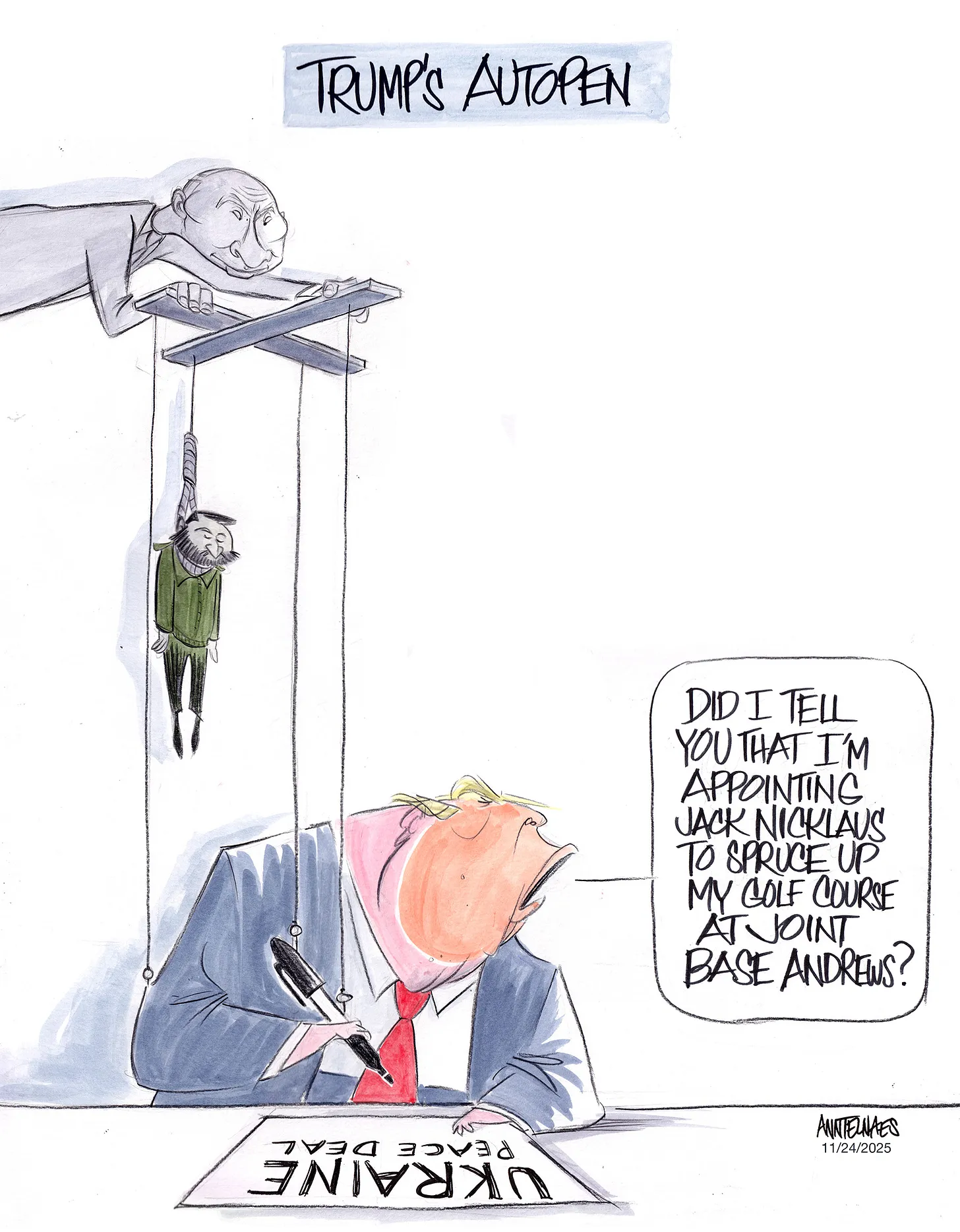 Lộ trình 28 điểm tai tiếng về vấn đề Ukraine, một bản văn tiếng Anh khập khiễng , xem ra được AI dịch từ bản tiếng Nga, được Dmitriev bàn thảo với Witkoff và con rể của Trump trong chuyến đi của ông tới thiên đàng chơi gôn ở Miami trong tháng 10 vừa rồi.