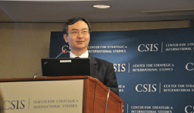 Giáo Sư Su Hao, Ðại Học Ngoại Giao Bắc Kinh, tại buổi hội thảo do CSIS tổ chức. (Hình: Hà Giang/Người Việt)