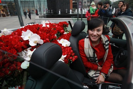 Mỹ nữ lái Audi chở 1000 bông hồng tìm... cảnh sát đẹp trai