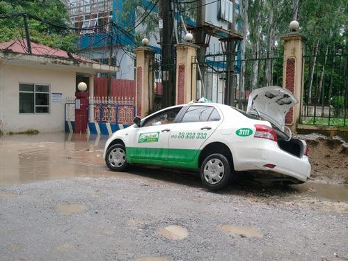 Tưởng vũng nước nông, taxi sập hầm sâu cả mét