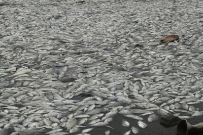Cá nuôi hồ ở Quy Nhơn chết trắng khắp nơi