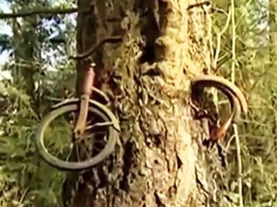Phát hiện xe đạp mất tích 50 năm giữa thân cây