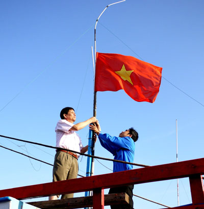 Ngư dân Trường Sa đón nhận 1.000 lá cờ Tổ quốc