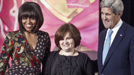 Phát biểu tại buổi lễ trao giải ở Bộ Ngoại giao, Đệ nhất Phu nhân Bấm Michelle Obama nói: