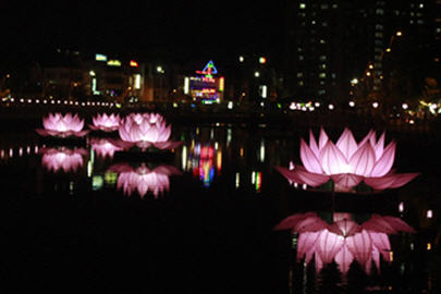 Hoa sen cao 3m lung linh trên kênh Nhiêu Lộc