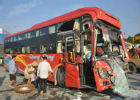 Xe khách nát đầu vì lao thẳng vào xe tải