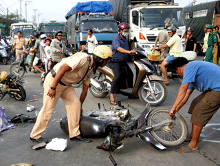 Xe Cảnh sát giao thông gây tai nạn, 2 người bị thương