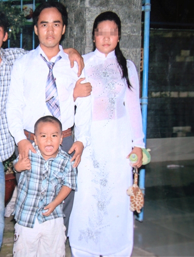 Hai vợ chồng cùng cháu Bảo trong ngày cưới (đến khi có 2 cháu, đôi vợ chồng nghèo mới đủ tiền làm đám tiệc ra mắt bà con).