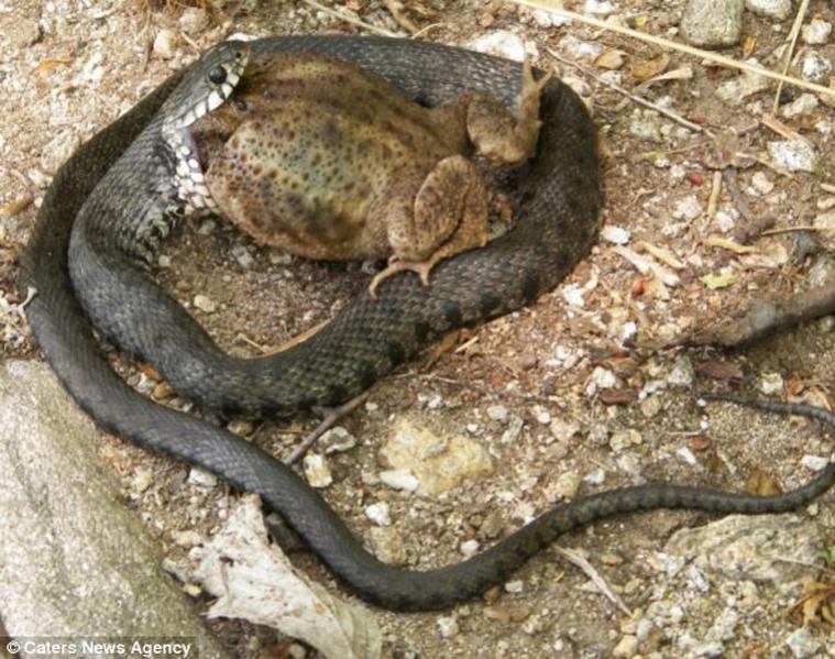 Xem rắn tham ăn cố nuốt cóc "khủng"