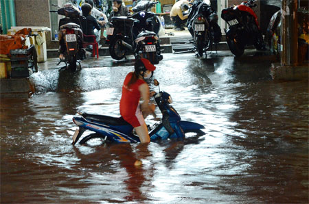 Mưa lớn, người Sài Gòn lại bơi trong nước bẩn