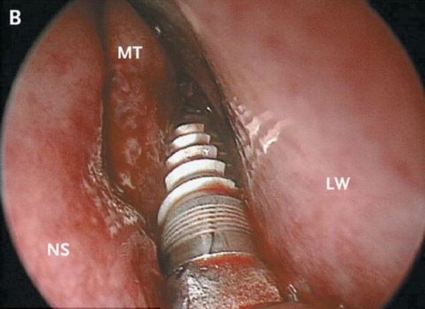Ảnh chụp X-quang cho thấy con ốc kim loại nằm sâu trong khoang mũi.