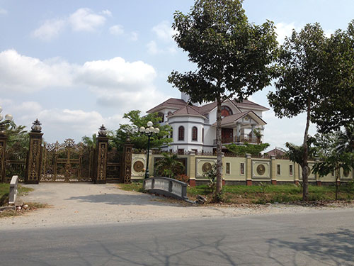 Người dân ở xã Sơn Đông gọi căn biệt thự này là “cung điện” có một không hai ở ĐBSCL, xây hơn 1 năm mới xong. Công nhân xây dựng từ đâu tới không ai rõ và hằng ngày ở trong khuôn viên công trình chứ ít giao lưu với bên ngoài. Muốn vào cổng biệt thự phải đi qua cây cầu bắc qua kênh. Bề ngang tường rào khoảng 100 m.