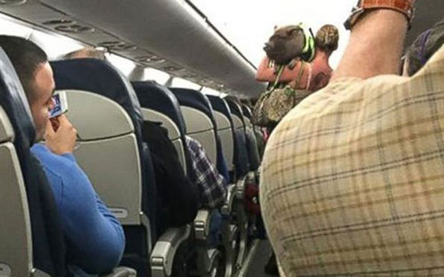 Theo ABC News, vị khách nữ mang theo con lợn nặng hơn 30 kg lên khoang hành khách trên một chuyến bay của hãng hàng không US Airways (Mỹ). Các hành khách trên máy bay kể lại rằng người phụ nữ này đã giấu con lợn trong túi hành lý xách tay.