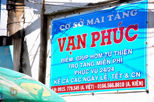 Cũng tại hẻm này, nhiều người ngạc nhiên xen lẫn tò mò với một tấm biển có nội dung: "Vạn Phúc - Điểm giúp hòm từ thiện, trợ táng miễn phí phục vụ 24/24, kể cả ngày lễ, tết và Chủ nhật". Thấy chúng tôi khá tò mò, một người dân ở đây đã nhiệt tình dẫn chúng tôi đến gặp "chủ nhân" của tấm biển ấy. Đólà anh Nguyễn Văn Úc (SN 1963) và hiện đang làm nghề xe ôm.