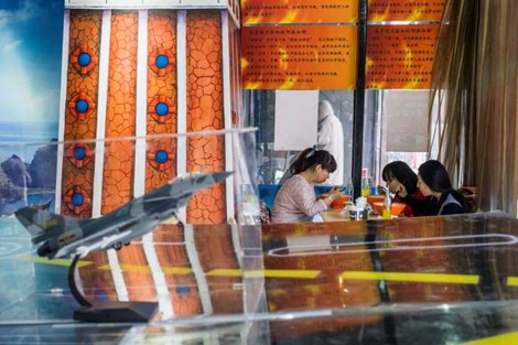 Ông Lu He cũng tỏ rõ lòng "nhiệt thành" của mình với đất nước. Bằng chứng là khắp nhà hàng do ông Lu làm chủ lắp đầy mô hình súng máy, cờ quốc gia và quầy hàng thiết kế giúp như tàu sân bay Liêu Ninh đầu tiên của Trung Quốc.