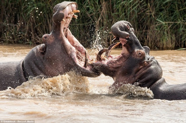 Một cảnh tượng vô cùng đau xót đã xảy ra tại khu bảo tồn động vật hoang dã iSimangaliso, phía đông Nam Phi. Trong lúc hai con hà mã trưởng thành xông vào giao chiến, một con hà mã con đi lạc vào để rồi bị tấn công, quăng quật đến chết. Con hà mã mẹ đã bất lực chứng kiến cảnh con mình bị chết thảm mà không kịp phản ứng gì!
