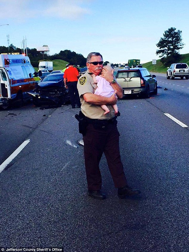 Bức ảnh phó cảnh sát trưởng Ric Lindley vỗ về bé gái trong vụ tai nạn đã nhận được hàng trăm nghìn lượt chia sẻ từ cộng đồng mạng