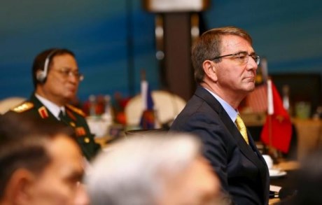 Ông Ashton Carter và người đồng cấp Hishammuddin Hussein của Malaysia vừa tham dự Hội nghị Bộ trưởng Quốc phòng ASEAN mở rộng (ADMM+). Sau cuộc họp kéo dài hai ngày, Bộ trưởng Quốc phòng các nước ASEAN và các đoàn từ 8 quốc gia đối tác không thể đưa ra tuyên bố chung vì bất đồng quan điểm về vấn đề Biển Đông.