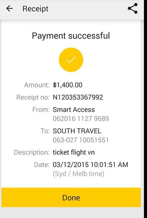 Trao đổi với PV, P.M.H, du học sinh đang theo học ở Sydney kể: "Qua giới thiệu của bạn bè về một cô gái tên Vi Tran, chuyên bán vé máy bay cho du học sinh ở Úc với giá tốt và rất nhiệt tình, nên em tin tưởng liên hệ qua Faebook và đặt mua vé về Việt Nam ngày 14/12, bay lúc 11h 50, với số tiền 1.140 AUD".