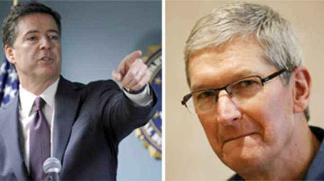 Cuộc đối đầu thú vị giữa giám đốc FBI James Comey với lãnh đạo Apple Tim Cook - Ảnh: Reuters