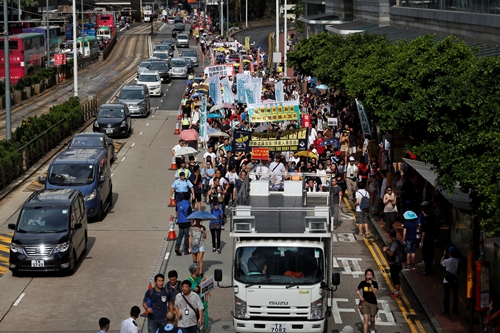 Người biểu tình ở Hong Kong xuống đường ngày 18/6 để phản đối Trung Quốc. Ảnh: Reuters.