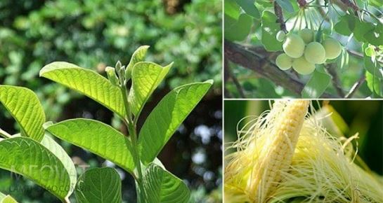 – Lá ổi, lá bạch quả 15g, râu ngô 30g.