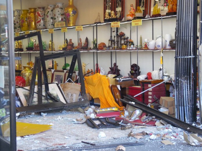 Phía trong tiệm sau khi cảnh sát Westminster dời chiếc xe Toyota Camry ra ngoài.