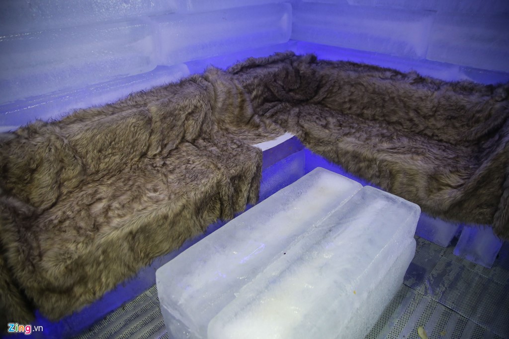 Chị Quách Thủy (chủ quán) cho hay quán được đầu tư khoảng 2 tỷ đồng và mất thời gian hai tháng để hoàn thành. Hệ thống làm lạnh bên trong quán có thể đảm bảo nhiệt độ -25 độ C.