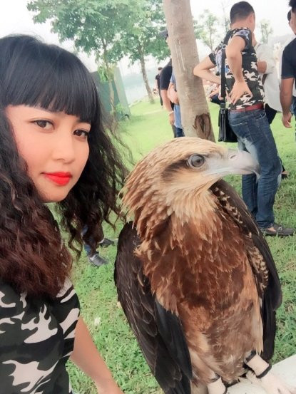 "Khi mình yêu động vật, gần gũi, sống chân thành chúng thì mới chúng mới có tình cảm với mình và biết nghe lời", đó là chia sẻ của Đặng Phương. Trong ảnh, Phương chụp cùng loài Diều núi.