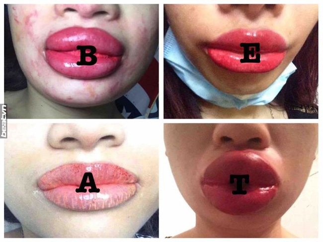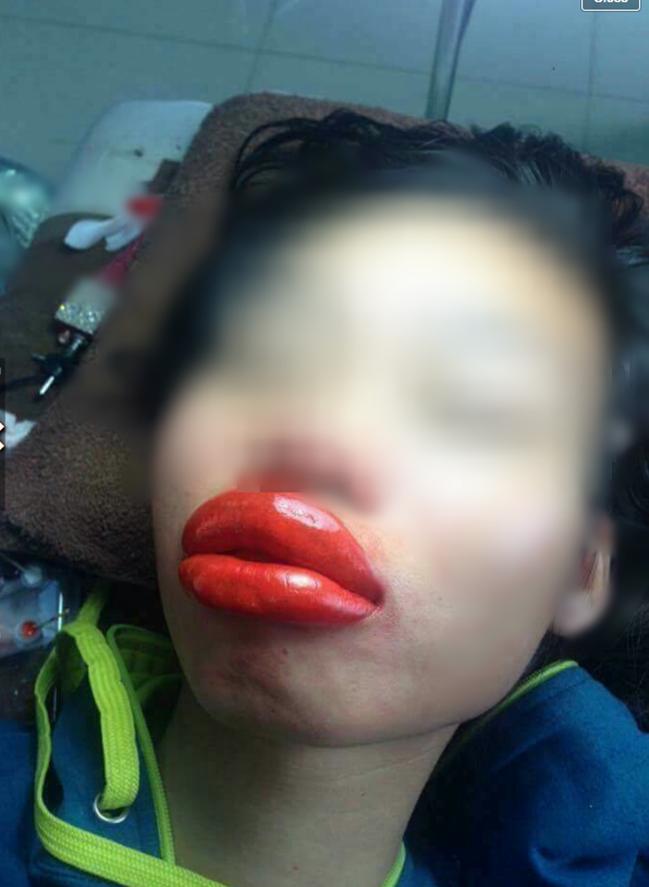 Những đôi môi sưng phồng sau phẫu thuật.