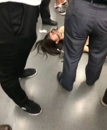 Bất ngờ lăn đùng ra giữa sàn tàu điện ngầm