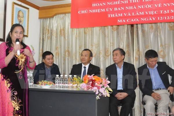 Thứ trưởng Bộ Ngoại giao, Chủ nhiệm Ủy ban Nhà nước về người Việt Nam ở nước ngoài Vũ Hồng Nam đã có buổi gặp mặt ấm áp, thân tình với kiều bào tại Macau, Trung Quốc. Thứ trưởng cho biết, Việt Nam sẽ luôn cố gắng hết sức để đảm bảo quyền lợi của kiều bào. Nhưng người Việt trong buổi gặp gỡ cũng đã đưa ra những ý kiến đề xuất cho kiều bào tại đây.