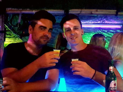 Dave (phải) uống vài ly cùng bạn trong quán bar.
