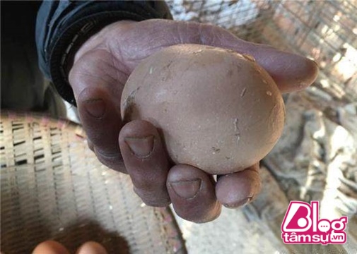 Qủa trứng cầm vừa đẫy một bàn tay. Màu sắc giống với trứng gà bình thường. Bao nhiều năm nuôi gà, gia đình ông chưa bao giò nhìn thấy quả trứng lớn như vậy.